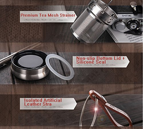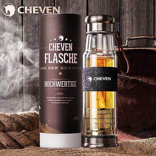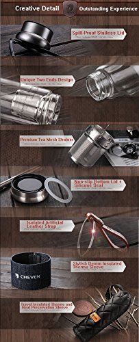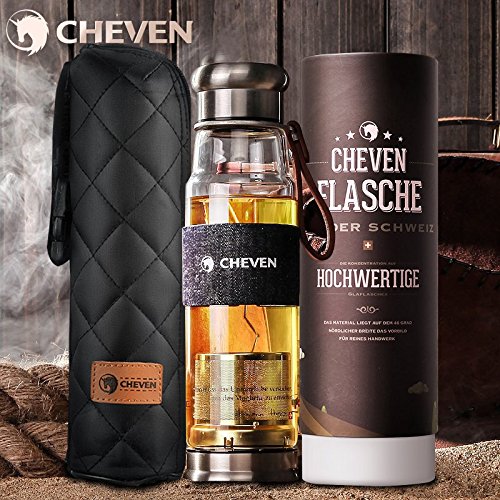 CHEVEN Tea Infuser Tumbler & Fruit Infuser Double Glass Water Bottle 13oz with Tea Strainer /Tea Cup with Stainless Steel Steeper/Portable Teapot, Travel Mug with Insulated Thermo Sleeve (Courage)