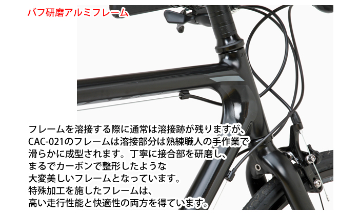 ●各溶接部を熟練職人が手作業で滑らかに研磨し成型したフレームが美しいCANOVERクロスバイクシリーズのフラッグシップモデル。