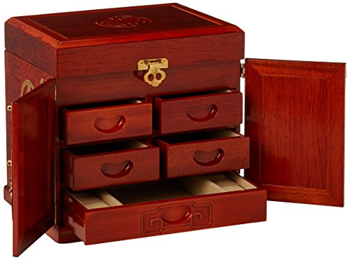 Oriental Furniture Rosewood Jewelry Cabinet with 5 Drawers - Honey