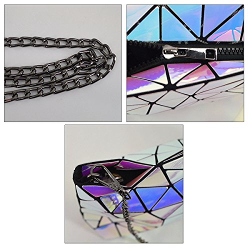Sun Kea Geometric Bag Women Cross-Body Bag PU Shoulder Bag Chain Bag Laser Clutch Purse Bags