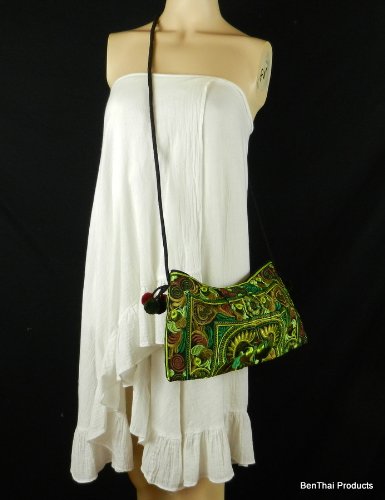 BTP! HMONG Bag Swingpack Hill Tribe Ethnic Bird Embroidered Sling Crossbody Shoulder Purse Green HMSP6