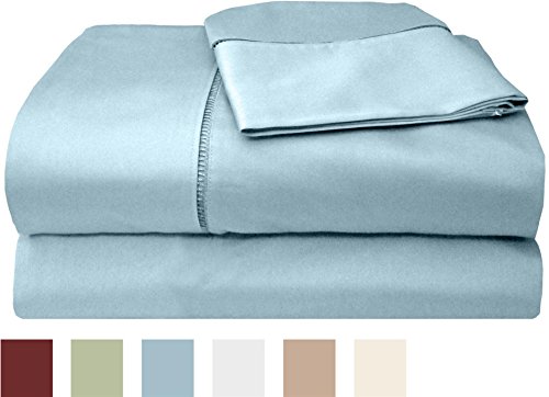 Veratex Legacy Collection 500 Thread Count 100% Egyptian Cotton Sateen Sheet Set With Elegant Stitch Hem Design, King Size, Blue