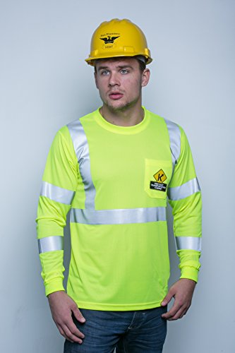 Safety Shirt, Hi Visibility T-shirt, Long Sleeve, with Pocket, Lime Yellow Birdseye Knit Fabric, with 3M Scotchlite Reflective Tape, ANSI Class 3 (Large)