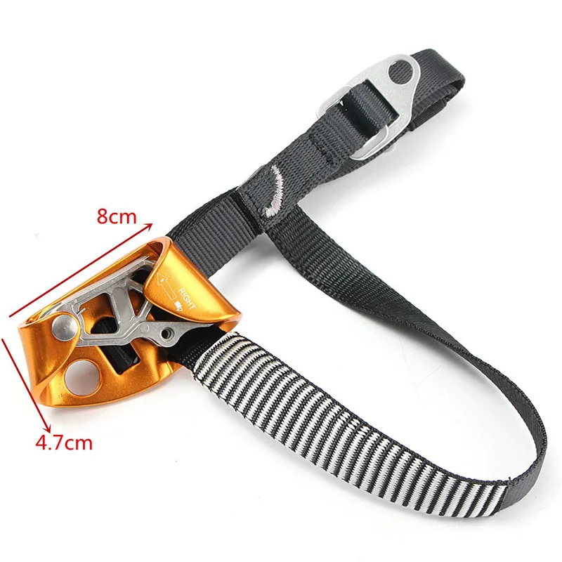 Features: For right and left foot, according to your need to buy Cooperation hand ascender or chest ascender Suitable for diameter 8-13mm rope Use of regulating Buckle design, can adjust the size when using The compact shape and durability of its attachment strap allows it to remain constantly attached to the foot Suitable for mountaineering, rock climbing, fire and rescue, engineering protection