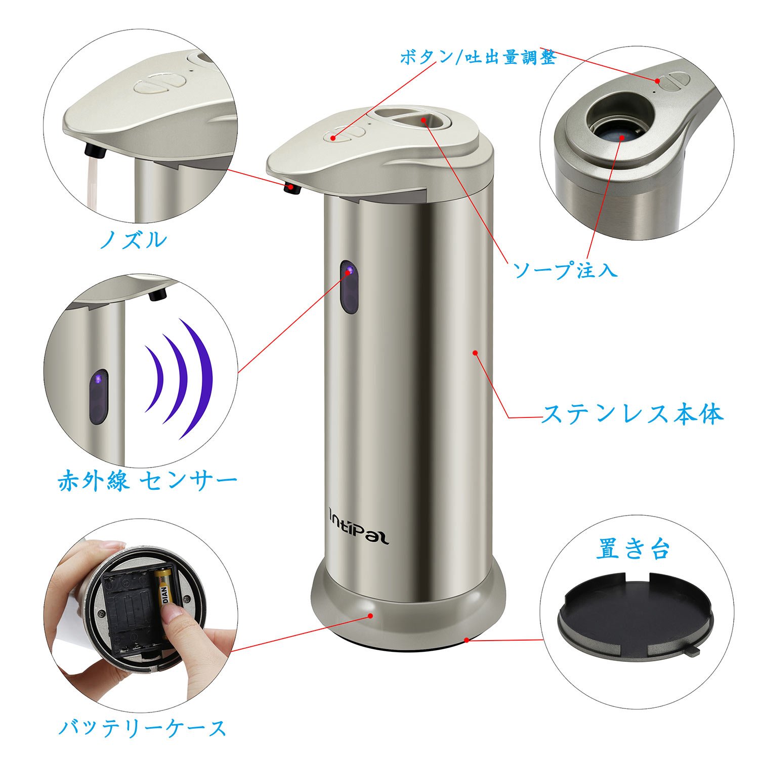 The automatic dispenser has durability made of stainless steel, it is hard to slip because the rubber base is attached to the bottom.