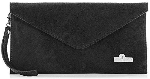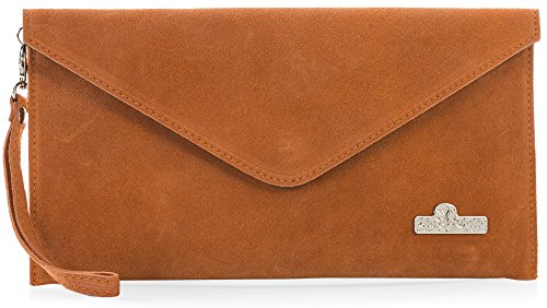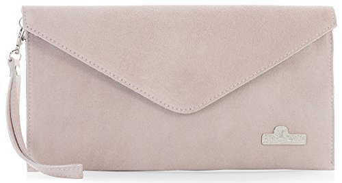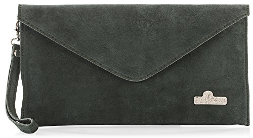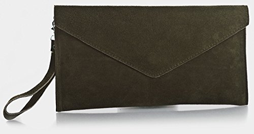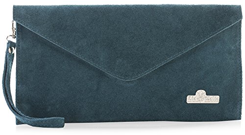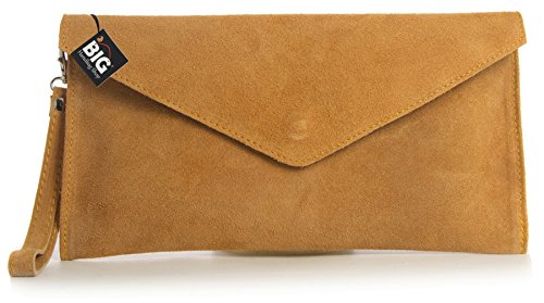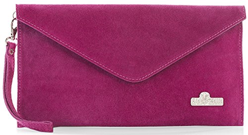 Real italian leather suede cluth bag in envelope shape with a removable hand wrist strap and a Big Handbag Shop Charm