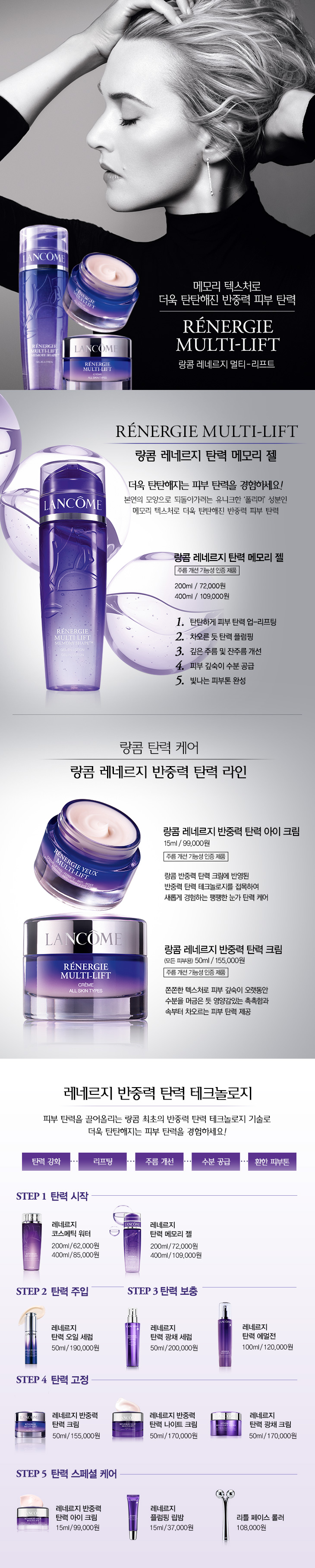 본연의 모양으로 되돌아가려는 유니크한 '반동 폴리머' 성분인 NEW 메모리 텍스처로 더욱 탄탄해진 반중력 피부 탄력. 케어 첫단계 젤 스킨