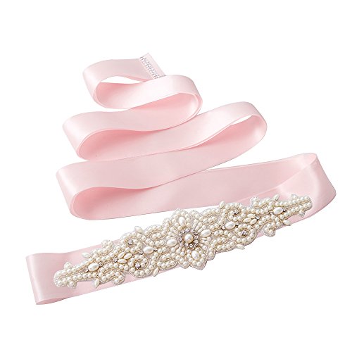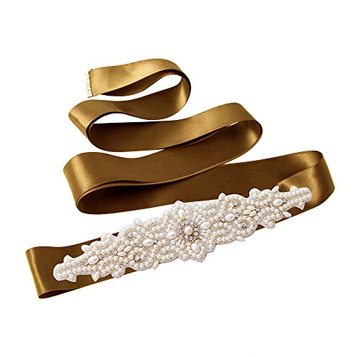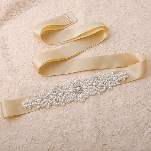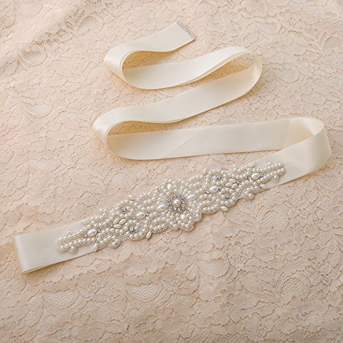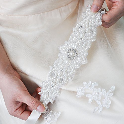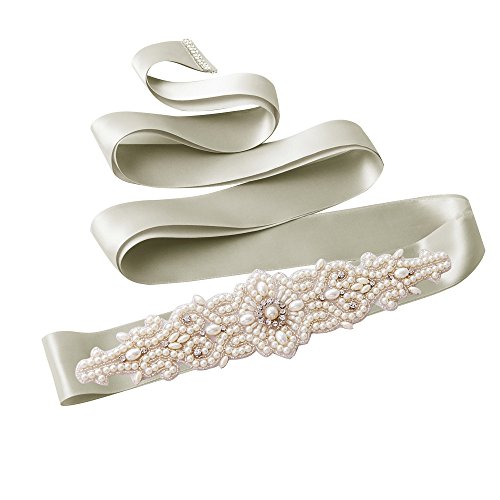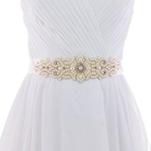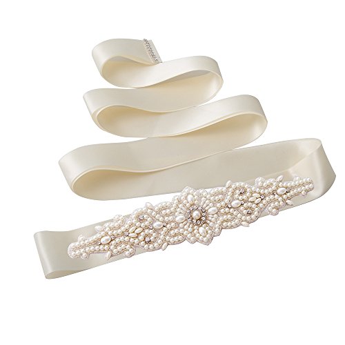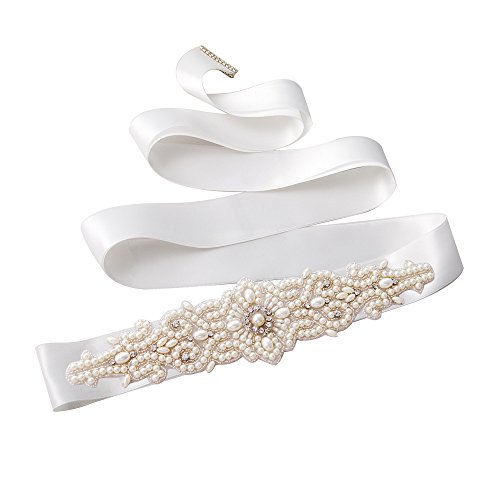 | ULAPAN Women's Pearls Bridal Sash Bridal Belt Beadings Wedding Belts Wedding Sashes |