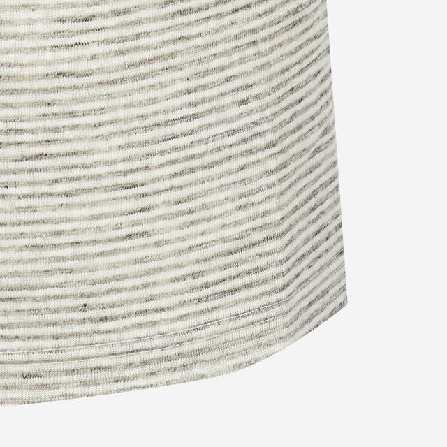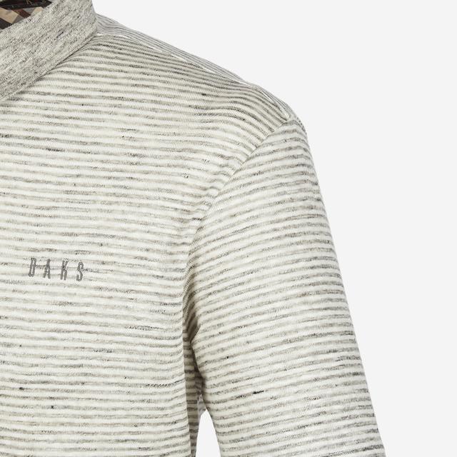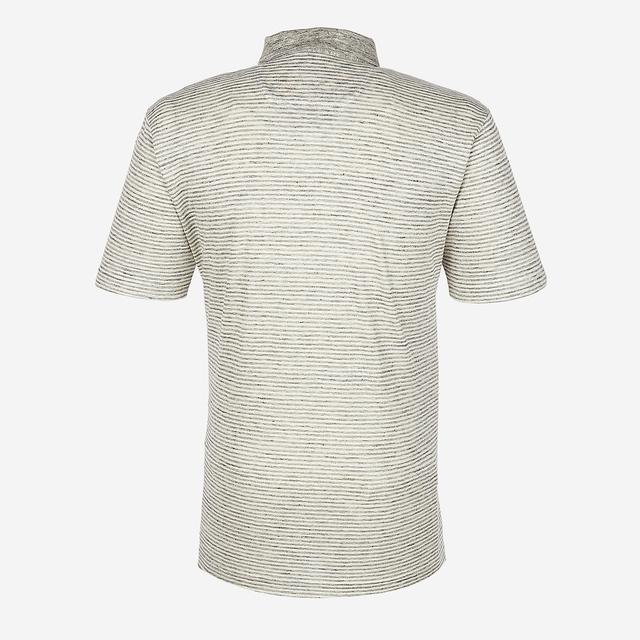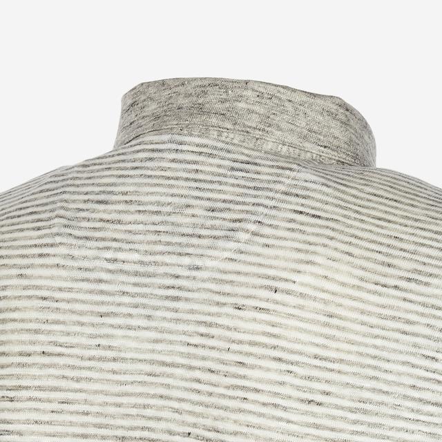 스트라이프 패턴으로 트렌디한 외관을 보여주며 카라에 멜란지 컬러로 포인트를 준 반팔 티셔츠입니다.