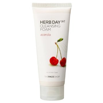 -. Feature : The Face Shop Herb Day 365 Acerola Cleansing Foam / 170ml / What's an Acerola you ask? It's a tropical fruit bearing shrub known to be rich in vitamins C, A, B1, B2, B3, carotenoids, and bioflavonoids which are thought to be strong antioxidants. / This cleansing foam is infused with acerola extracts among other natural ingredients to give you a mild and gentle cleansing experience. / Everyday impurities and buildup are easily handled by this cleanser while at the same time, it delivers nourishment directly to your skin.