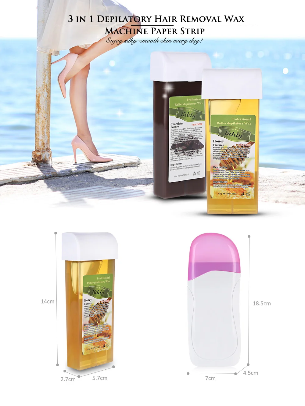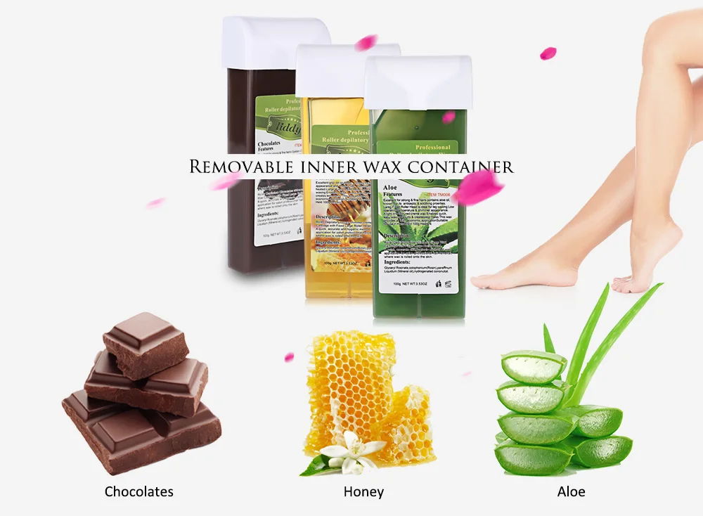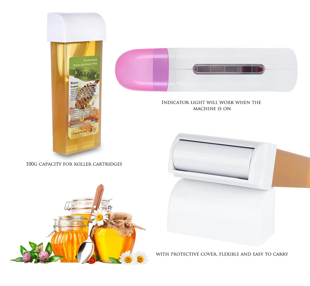 Package including: Depilatory Roll Wax Heater, Wax Cartridge, Paper