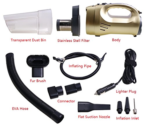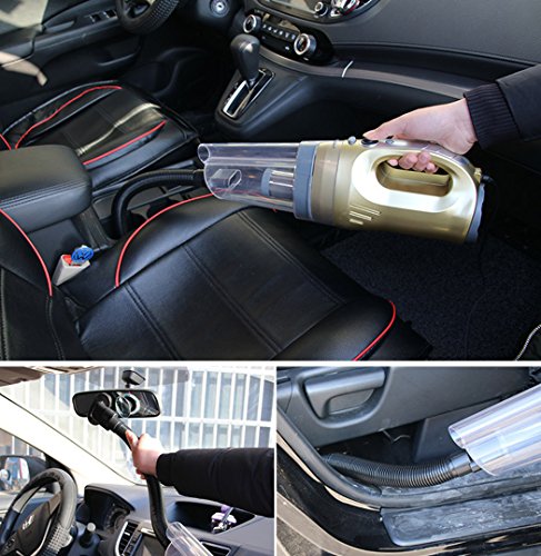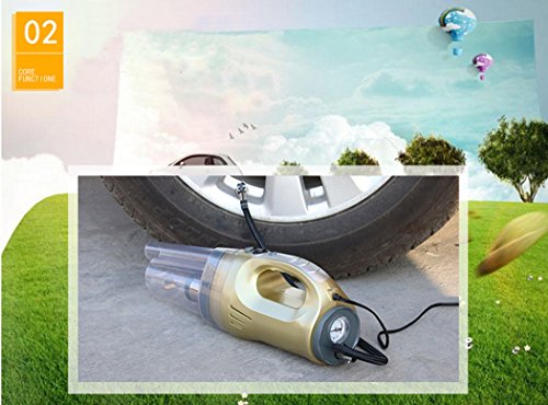 4 in 1 car vacuum cleaner This product is 120W high-power vacuum suction, to deal with the car scraps of paper, crackers, dust, hair care. 4.6m long line, enough front row, the back row for cleaning use. Work is simple, efficient, no longer have to worry about cleaning up the garbage! Which also save you a lot of car wash costs it Install home power converter, you can also use at home, can be described as human! 【Product color】: gold black 【Product line length】: 4.6m 【Input voltage】: 12V 【Product Specifications】: wet and dry 【Including accessories】: 1 * flat nozzle, 1 * EVA hose, 1 * brush nozzle, 1 * manual, 1 * vacuum cleaner 【Material】: 120w motor + ABS 【Instructions】: 1.the first car power to open, the keyhole is generally second gear; keyless a key to start press 1, do not need to launch the vehicle. Can see the DVD, radio sound, the image can be. 2. the product of the cigarette butts into the car cigarette lighter, clean the front row of the front of the cigarette, rear or trunk inserted after the row of smoke holes. 3. open the switch, clean up the work 4. clean up the gap dead end Please put on the product comes with a flat nozzle, clean water stains please replace the water stains nozzle. 5. continuous cleaning time should not exceed 30 minutes, should stop using 2-5 minutes to continue to use. 【Precautions】: 1. 12V car for more than 24V car disabled. 2. if the wire is hot, hot, please check the car cigarette lighter voltage is normal. 3. in order to extend the service life, continuous cleaning time should not exceed 30 minutes, should stop using 2-5 minutes to continue to use. After use, please clean up the garbage inside the garbage, and finally safe custodyFeature