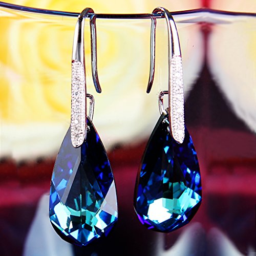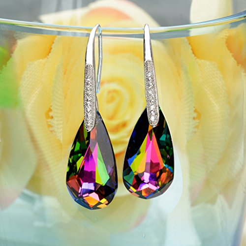 -. Title : EleQueen 925 Sterling Silver CZ Teardrop Hook Earrings Adorned with Swarovski® Crystals