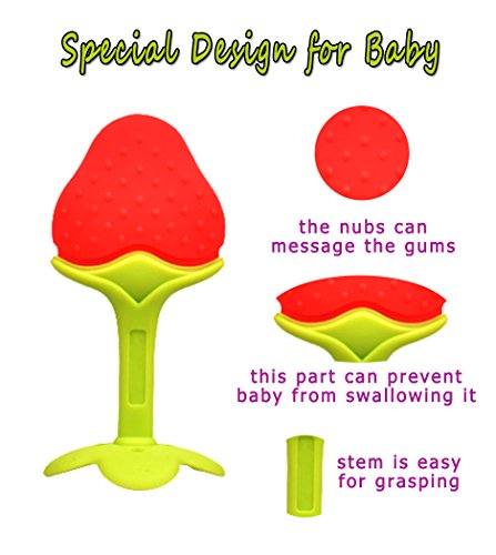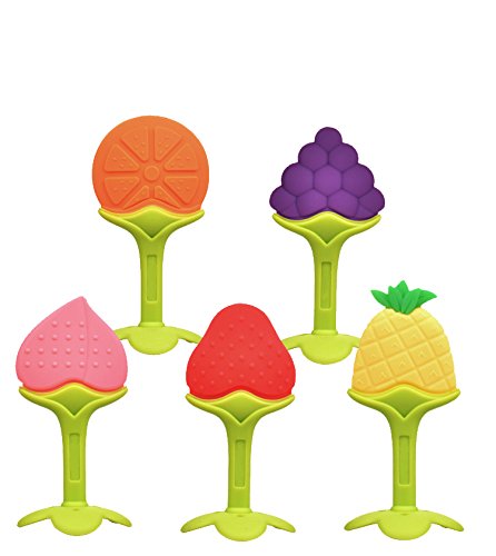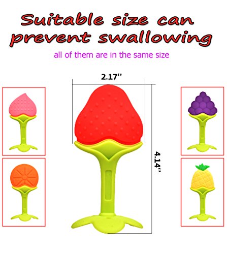 ?FDA GUARANTEE-SAFE & QUALITY:The baby teethers are made from 100% high grade food silicone.In addition,the baby molars are BPA free,non toxic with FDA compliant testing. Therefore,the fruit teethers are tasteless,excellent toughness and more durable.