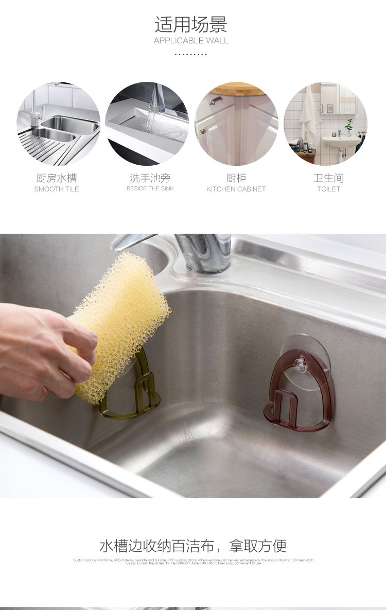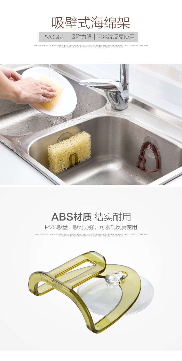 Summary: Suction wall sponge frame, ABS material, beautiful and durable; PVC suction cup, strong adsorption, washable repeated use; pool edge storage scouring pad, cleaning balls, etc., for easy washing dishes; Etc., easy to access.