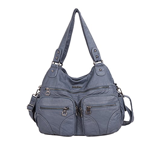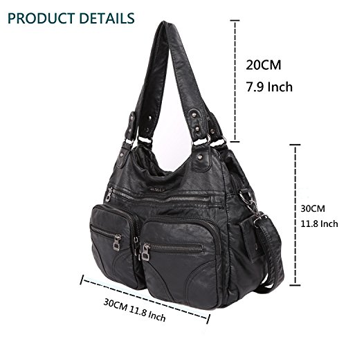 -. Brand : Angel Kiss -. Department : womens -. Feature : MATERIAL: High Quality Wash PU Leather / CLOSURE: Top Zipper Closure / DIMENSIONS: 35"W x 13"H x 31"D , Height of Handle: 4.5" / POCKETS: Two (2) Inner Zipper Pocket for Holding Wallet or Cell Phone , Two (2) Interior Open Pockets for Keys or Card and Two (2) Compartments for Large Stuff / FEATURES: A Long Detachable Shoulder Strap, Zip-pockets in Middle and Front, Side Patches with Adjustable Buckle -. ProductGroup : Shoes -. ProductTypeName : HANDBAG -. Title : Angelkiss Women Top Handle Satchel Handbags Purse Shoulder Bag