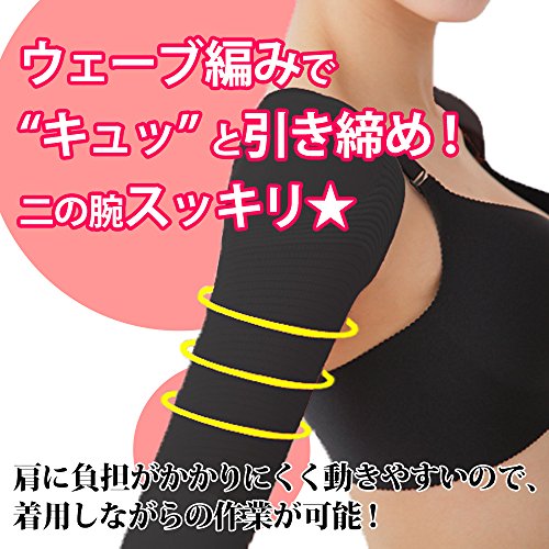 強力なウェーブ編みで肘下から二の腕へ引き上げ、気になる二の腕も"キュッ"とスッキリ引き締めます。