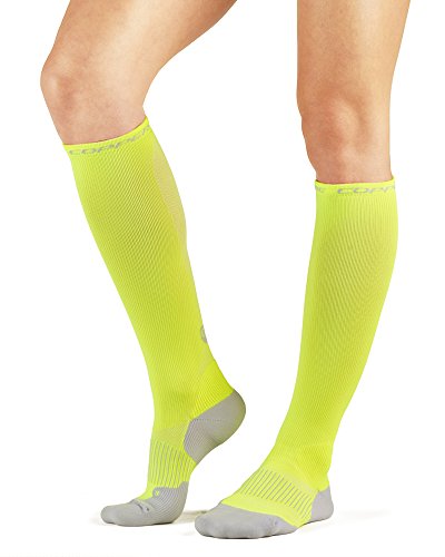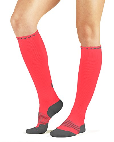 -. Feature : Comfortable compression that provides support for muscles and joints all day, every day. / Compression helps relieve everyday aches. / CopperZnergy fabric eliminates odor causing microbes on fabric. / Graduated compression assists with muscle recovery from the calf thru the foot / Knitted rib arch design provides added support, Nylon 92%, Spandex 8% / Graduated compression 18-22mmHg / Shortens muscle and joint recovery time / Enhances muscle and joint performance / Reduces lactic acid build-up