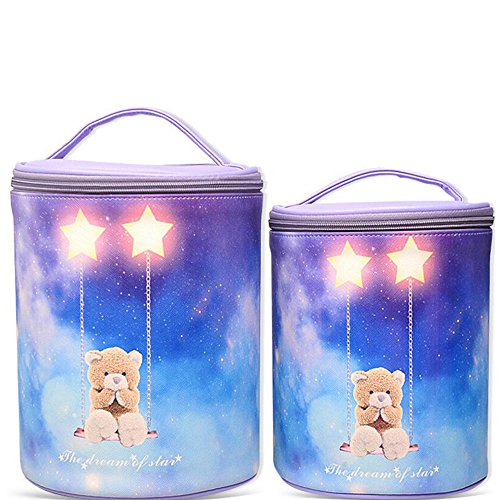 HOYOFO 2 Pcs/Set Multi-functional Cosmetic Storage Bags Makeup Household Items Organizer Barrel for Women and Children,Brown