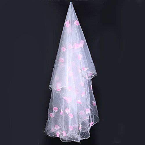 Package Including 1 * Bridal Veil 3M Mesh Bride Veil with Pink Flower Petals for Wedding Party Favors 0