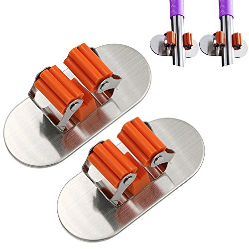 - 3M Self Adhesive Mop and Broom Holder Made of SUS 304 stainless steel construction for durability brushed, never rust. The 3M adhesive on the back can guarantee that the mop holder will stick to the surface well. The abrasion-resistant rubber rollers and buffers guarantee a long lifetime.