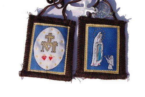 Our Lady of Lourdes brown Mt.carmel scapular by Rose Scapular