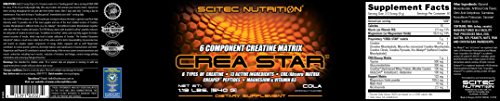 Studio : Scitec Nutrition Publisher : Scitec Nutrition Binding : Health and Beauty Product Description 6 TYPES OF CREATINE With over 4g of Creatine per serving, Crea Start enhances your high intensity workouts by utilizing one of the most popular and studied versions of Creatine-creatine monohydrate-in various forms, including Kre-Alkalyn buffered Creatine Monohydrate, Creatine Pyruvate, Creatine Citrate, and MicronTec. 13 ACTIVE INGREDIENTS Vitamins, minerals, amino acids, and other energy sources like Taurine actively invigorate your workout. Whether you're looking to gain weight, burn and lose fat, or get fit, this powder formula is results focused. Consider adding Crea Star to your workout routine if you are bodybuilding or trying to improve your health. INCREASED MUSCLE Both men and women can improve their muscle mass, strength and power with Crea Star growth formula. Unlike other supplements, Crea Star provides a complex formula, including high quality protein, niacin and magnesium oxide. ENERGY BOOST Creatine regenerates ATP, your body's energy source. Mix a pre or intra workout drink and go harder longer with more energy. When you're done, mix a post gym drink and get the vital nutrients you need to recharge and bulk up. ABSORBS QUICKLY Crea Star includes CreaPep, a combination of dairy peptides and proteins to enhance overall absorption of Creatine, and GlutaZorb instantized l-glutamine delivers a stable form of the same amio acids as CreaPep with better bioavailability to ensure fast absorption. DIRECTIONS Serving = 2/3 scoop 13-14 ounces water. To saturate your muscles with a 5 day "loading period" by daily taking a serving of CREA STAR for every 35 lbs of your body weight. Spread out servings and take before meals. WARNING Not intended for children under 18 or women who are pregnant or nursing. As with any supplement please consult with your doctor prior to use. - Crea Star Creatine Powder 0