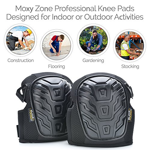 Moxy Zone Professional Knee Pads - Heavy Duty Foam Padded Shell and Comfortable Gel Cushion - Kneepads for Construction, Yard Work, Gardening, Flooring, Tile - Adjustable Straps for Men and Women
