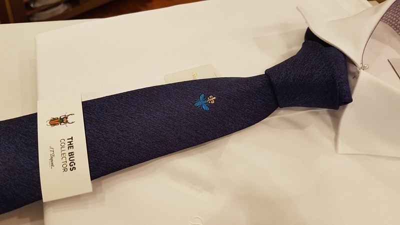 곤충 모티브로 포인트를 준 솔리드 넥타이