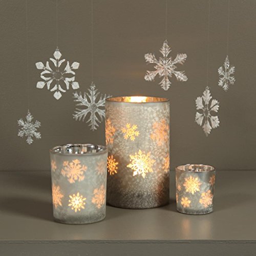 Studio : Intelligent Design Publisher : Intelligent Design Binding : Kitchen Product Description Our Jack Frost Hurricanes are a shimmering delight available in three sizes. The silvering on their interior is etched in with snowflake designs; they have a frosted exterior. A lovely decoration when unlit, they are positively striking when a lit candle is inside 0