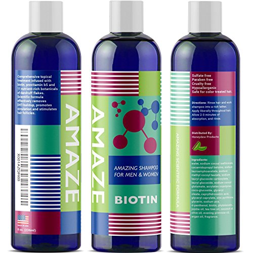 Amaze Biotin Shampoo is an all-natural thickening treatment that infuses hair and scalp with over 11 natural botanicals to nourish the hair follicle and stimulate hair growth. Don't let the term "all natural" fool you, the active ingredients pack a real punch and increase circulation to your roots while DHT blockers prevent hair fall for fuller thicker looking hair with body and shine.