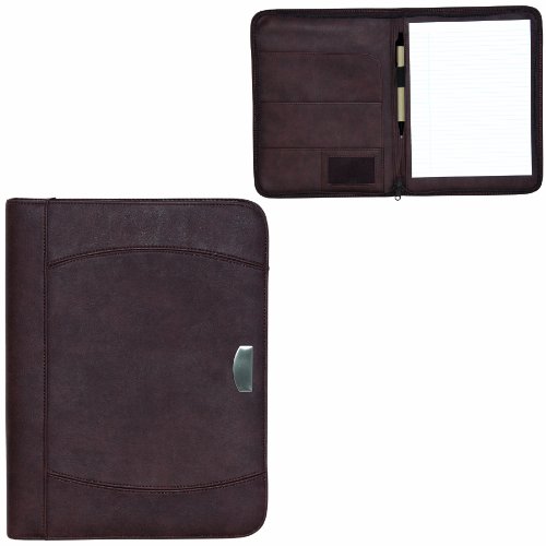 -. Feature : Three-sided zipper closure, Inside pen loop, / 10" W x 13" H x 1" D / Paper pad and recycled enviro pen included / Inside slash and business card pockets