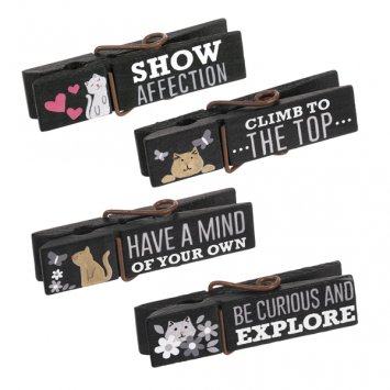 - Adorable gift set of 4 CAT Themed Clothespin Magnets