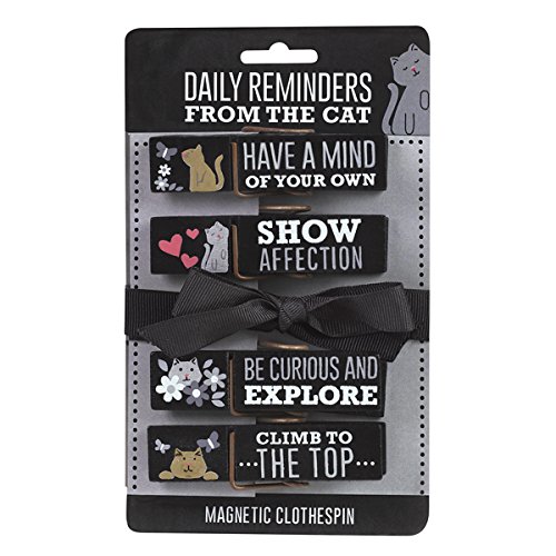 4 DAILY Reminders From the CAT = Clothespin Refrigerator Magnets with Inspirational Sayings "SHOW Affection" "CLIMB to the TOP" "Be Curious and EXPLORE" etc. GIFT Kitten