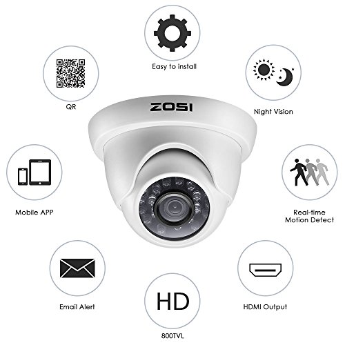 -. Title : ZOSI 8Pack 1/3" 800TVL 3.6mm IR Cut Color Outdoor Surveillance Camera 65ft Night Vision CCTV System Kits