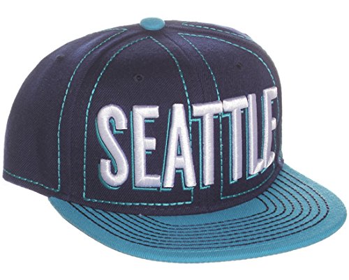 Title : American Cities Seattle 3-D Embroidery with Stiching Flat Bill Snap back Cap Hat (One Size, Navy/Teal)