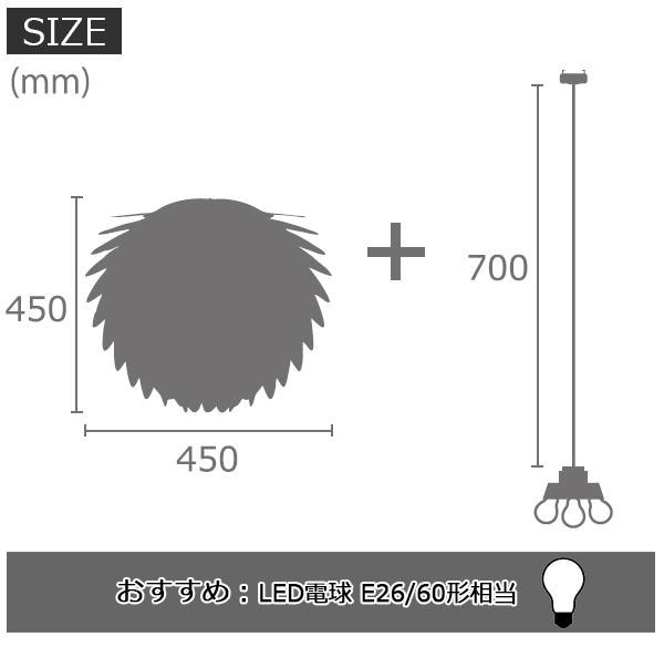 | サイズ | セード:φ450×H450mm、コード長:700mm 個装サイズ:47×33×21cm |