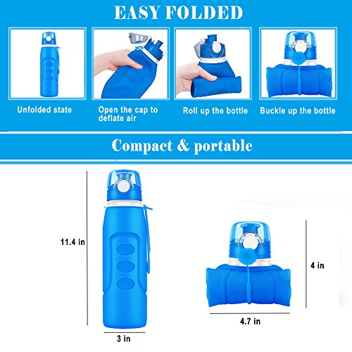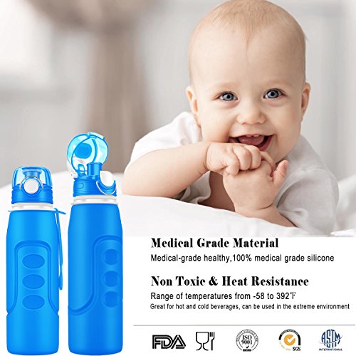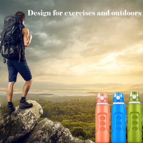 Collapsible Water Bottles 1 Litre (35fl oz) Rottay Foldable Silicone Water Bottle with Wide Mouth-BPA Free-Leak Proof-Flip Top Portable and Flexible Perfect for Sports and Outdoors