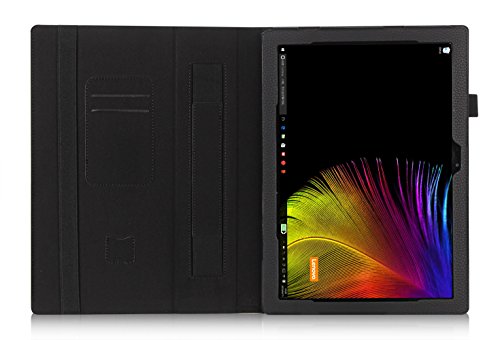 UTRO Leather Card Slots Flip Stand Case Hand Strip for Lenovo Miix 700 / Miix 4 12-inch Tablet - Black