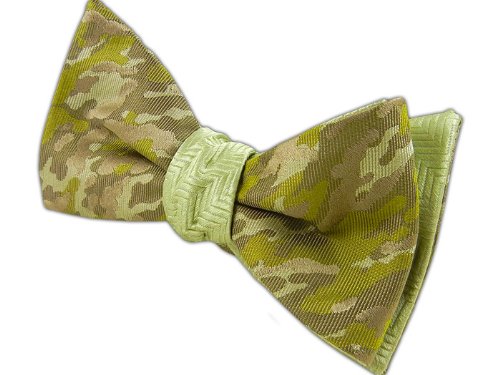 -. Title : The Tie Bar 100% Silk Green Camo Herringbone Reversible Self-Tie Bow Tie