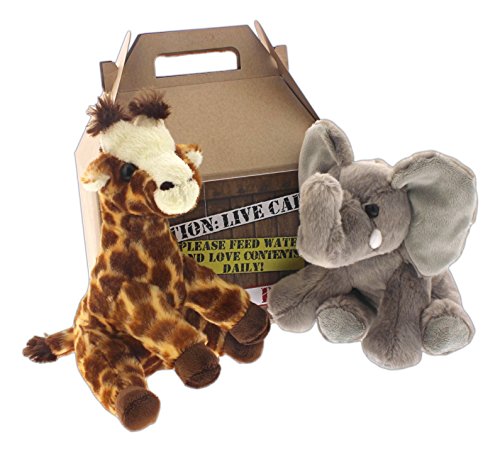 -. Title : Bundle of 2 Aurora 8" Plush Animals with Carrier - Giraffe & Elephant
