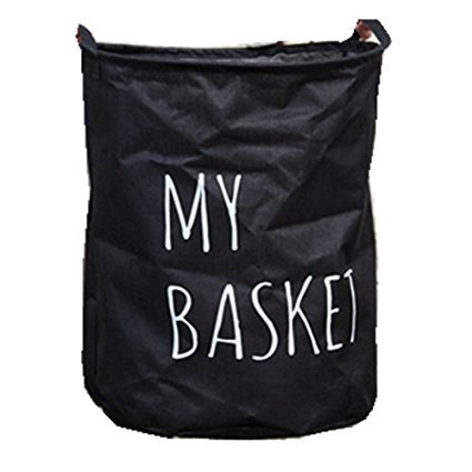-. Title : Fabric Foldable Round Laundry Basket Hamper Closet Storage Bin Bag