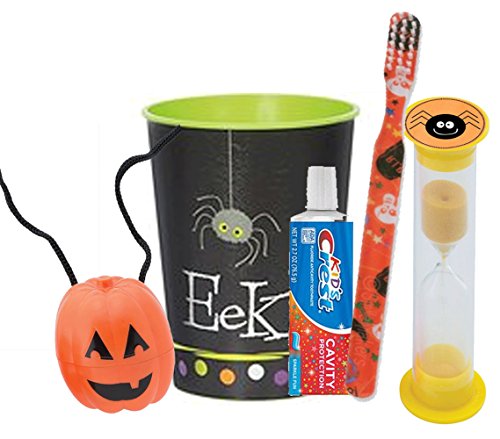 -. Feature : Turn something your kids have to do into something they want to do This Halloween...Because when brushing is fun, it gets done! / (1) SmileCare Youth Halloween Toothbrush! Features a Fun Halloween-themed design on its clear handle (1) Kids Crest Cavity Protection Sparkle Fun Toothpaste, Bubblegum Flavored! Travel Size Tube. / (1) Dentist Recommended 2 Minute Halloween Themed Brushing Timer (Assorted Styles) / (1) Halloween Themed 12oz Plastic Mouthwash Rinse Cup - Doubles As Toothbrush Holder! (Assorted Styles) / Plus Bonus "Remember to Brush" Visual Aid Jack O' Lantern Tooth Holder Necklace! These extra-large plastic pumpkins are designed like happy jack-o-lanterns, feature a strong woven necklace with a safety clasp, and are large enough for tooth fairy money.