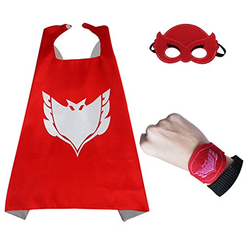 -. Feature : Set of 3, each set contained with mask and cape (sizes 27inches) bracelet. / Masks costumes for all character set of 3 catboy owlette gekko. - this set is popular among children who wants to pretend to be superhero in costume party. / Great show for young super hero wannabes,highly recommended for costume playing. / Quality made capes and masks,safe material from rayon, spandex. / Perfect gift for kids on birthday, christmas, halloween and role pretend play parties.