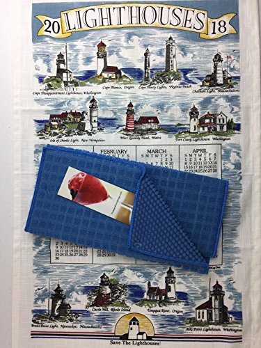 2018 Lighthouses Calendar Towel, Kitchen Drying Mat, and Cook Book Bookmark 3 Piece Bundle