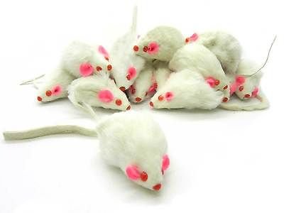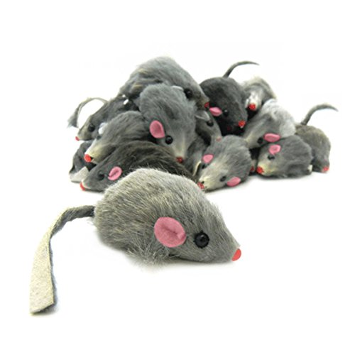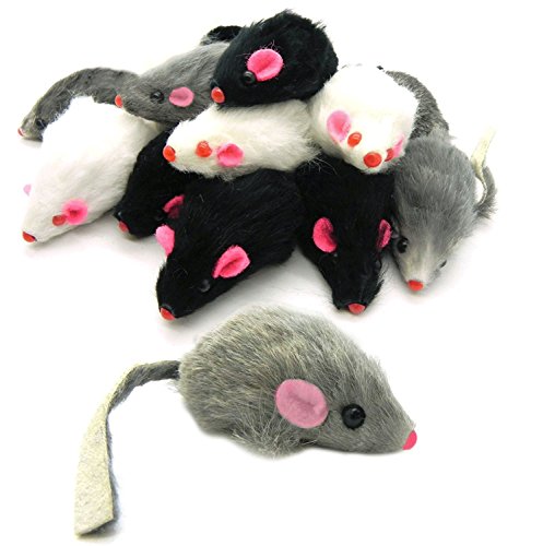 -. Feature : 100% Real Rabbit Fur / Makes a rattle sound when played with / Pink felt fabric ears, plastic nose and eyes. / About 2 inches from nose to tail / 4-white, 4-black, 4 gray toy mice