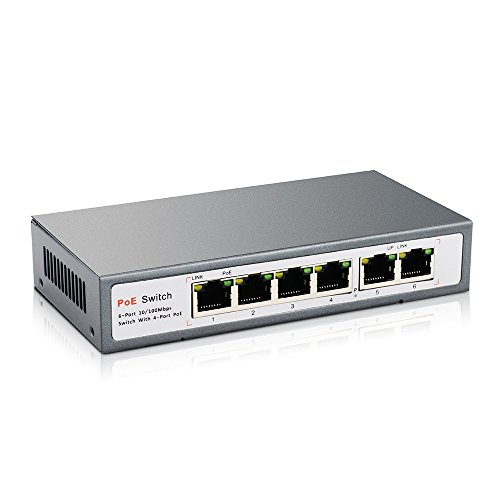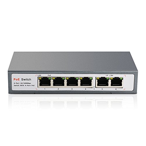 SV3C 4-POE Ports & 2-UPLINK Ports Unmanaged 10/100Mbps Fast Ethernet PoE Desktop Switch, 802.3af
