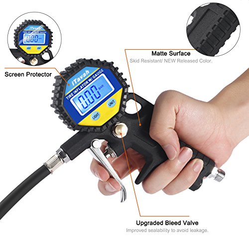 Thickened Alloy Clip Nozzle & 90º Brass Valve Stem Extender: Simply squeeze the clip and position the chuck over any Schrader-type tire valve; Release the clip to lock the hands-free chuck into place. Squeeze the trigger to inflate.
