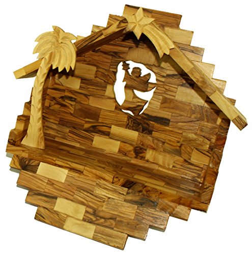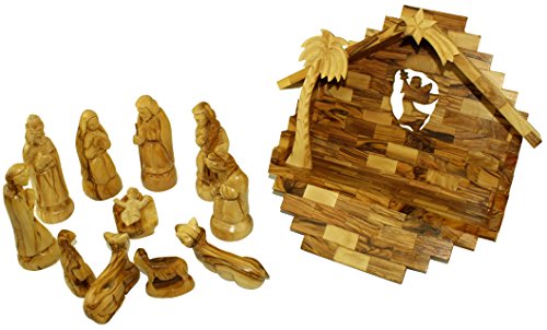 Exquisite Hand Carved Nativity Set From Bethlehem. This Olive Wood Nativity Set makes a very meaningful and special gift that will be cherished for a lifetime. Set includes: Joseph, Mary, Baby Jesus (in his crib), Three Kings, a Shepherd (with staff), a Cow, a Donkey and Two Sheep. The height of the figures is about 4.5 to 7 inches. Set includes an Olive Wood collapsible stable for easy storage. Complete set comes with our Certificate of Authenticity with the Lord prayer card and the Nativity story.