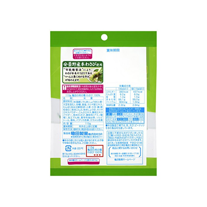 원재료:미,나오지 않겠 분,간장(밀 대두를 포함한다)고, 설탕,식염,가다랭이절 엑기스,담백 가수분해물(난밀 대두계 돼지를 포함한다)고, 분말 다시마,분말 간장,가다랭이 엑기스 파우더,다시마 엑기스,효모 엑기스 파우더,분말 고추냉이,조미료(아미노산등)고, 가공 나오지 않겠 분,향신료 추출물,솔《비토루》,향료,파프리카 색소,카라멜 색소